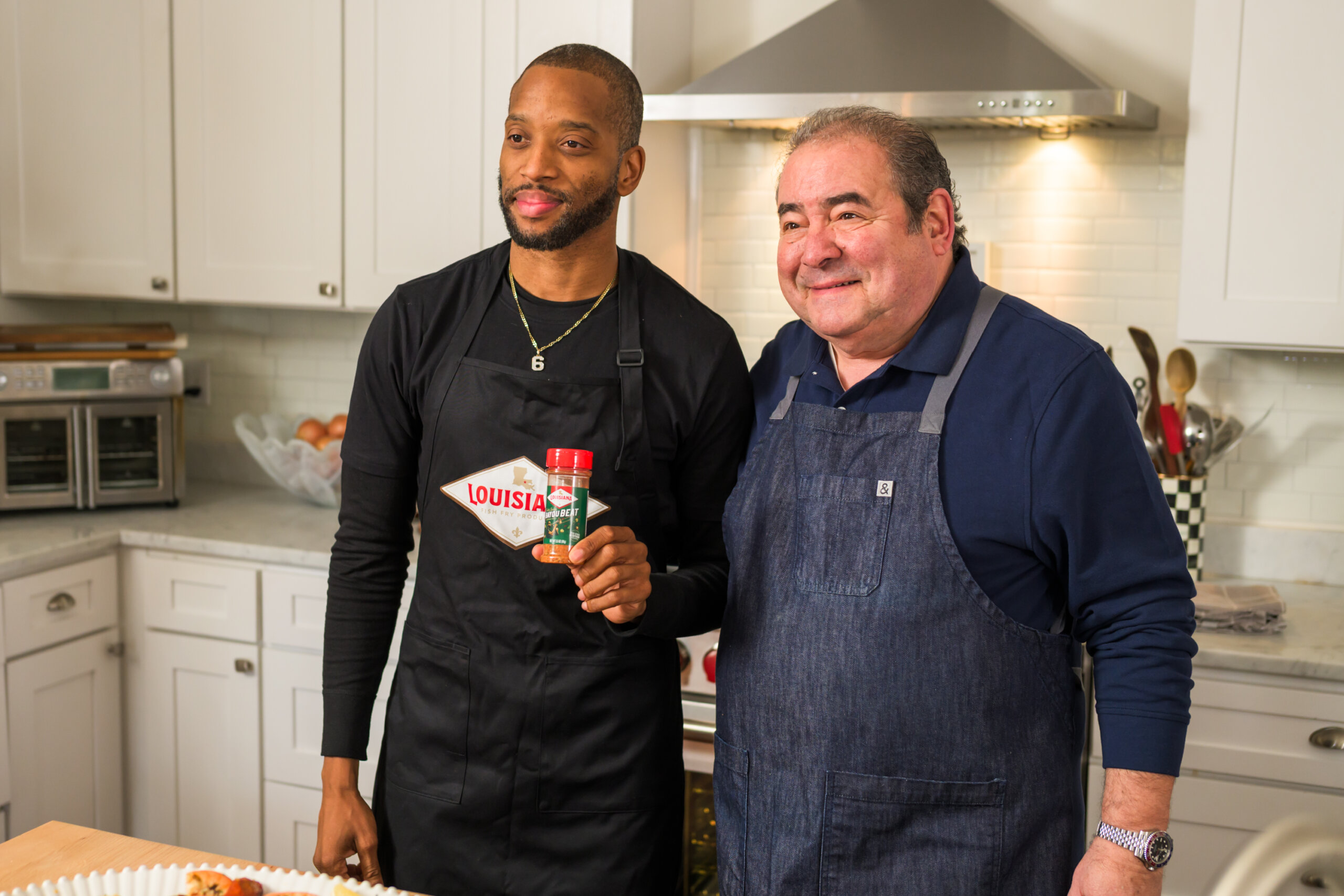 Behind the scenes with Chef Emeril Lagasse and local musician Troy “Trombone” Shorty, showcasing Troy’s new “Bayou Beat” spice mix.